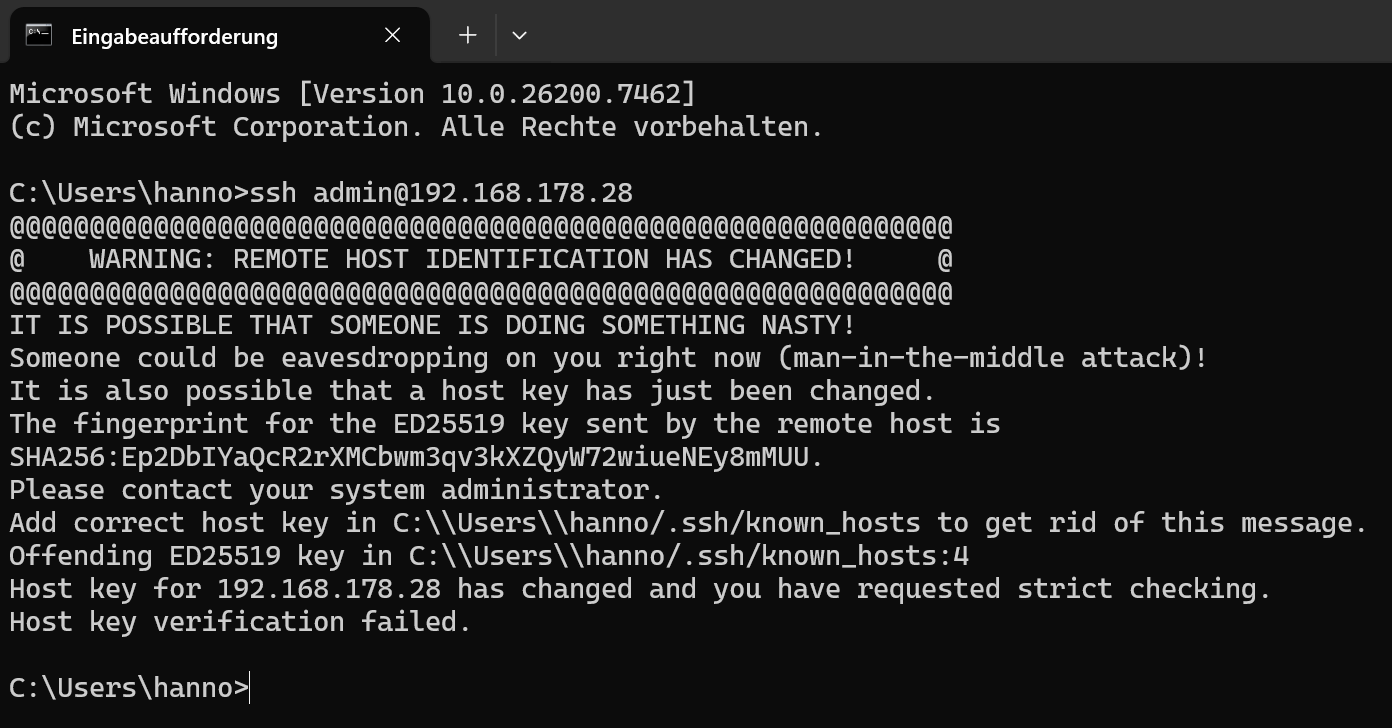 Löschen einfach Zeile 4 in Deiner known_hosts