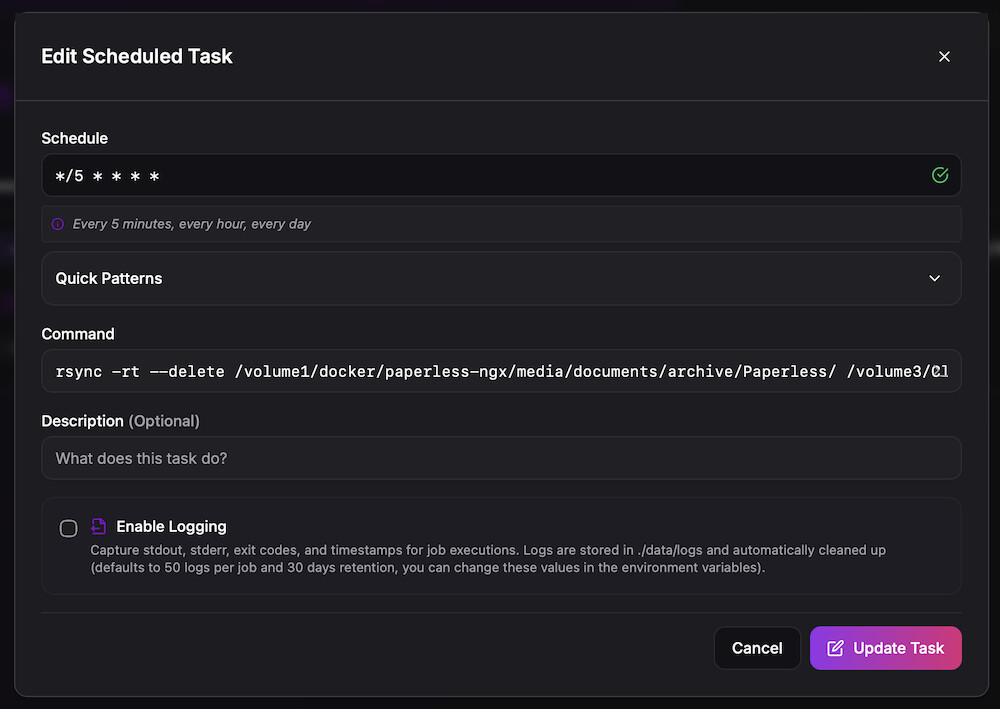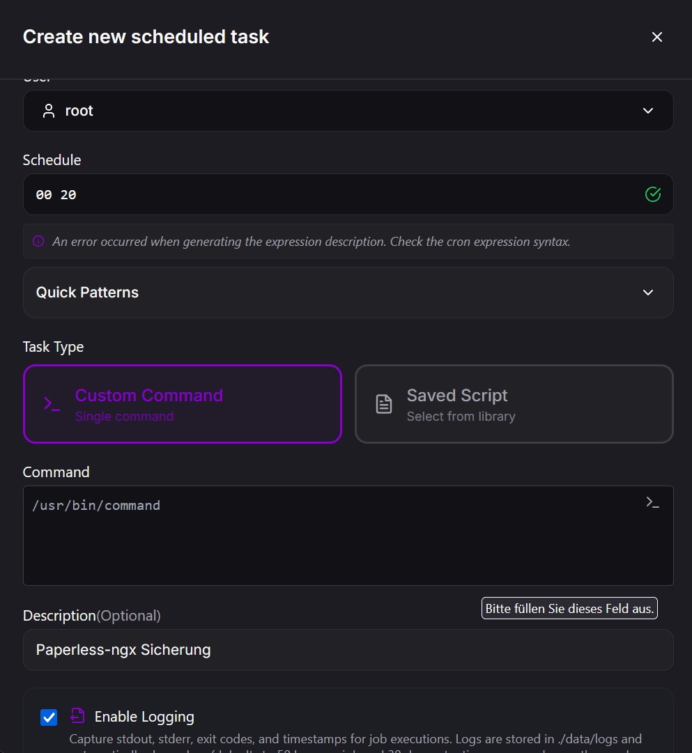 Ich habe genau für diesen Anwendungsfall Cronicle installiert als Docker Anwendung.
