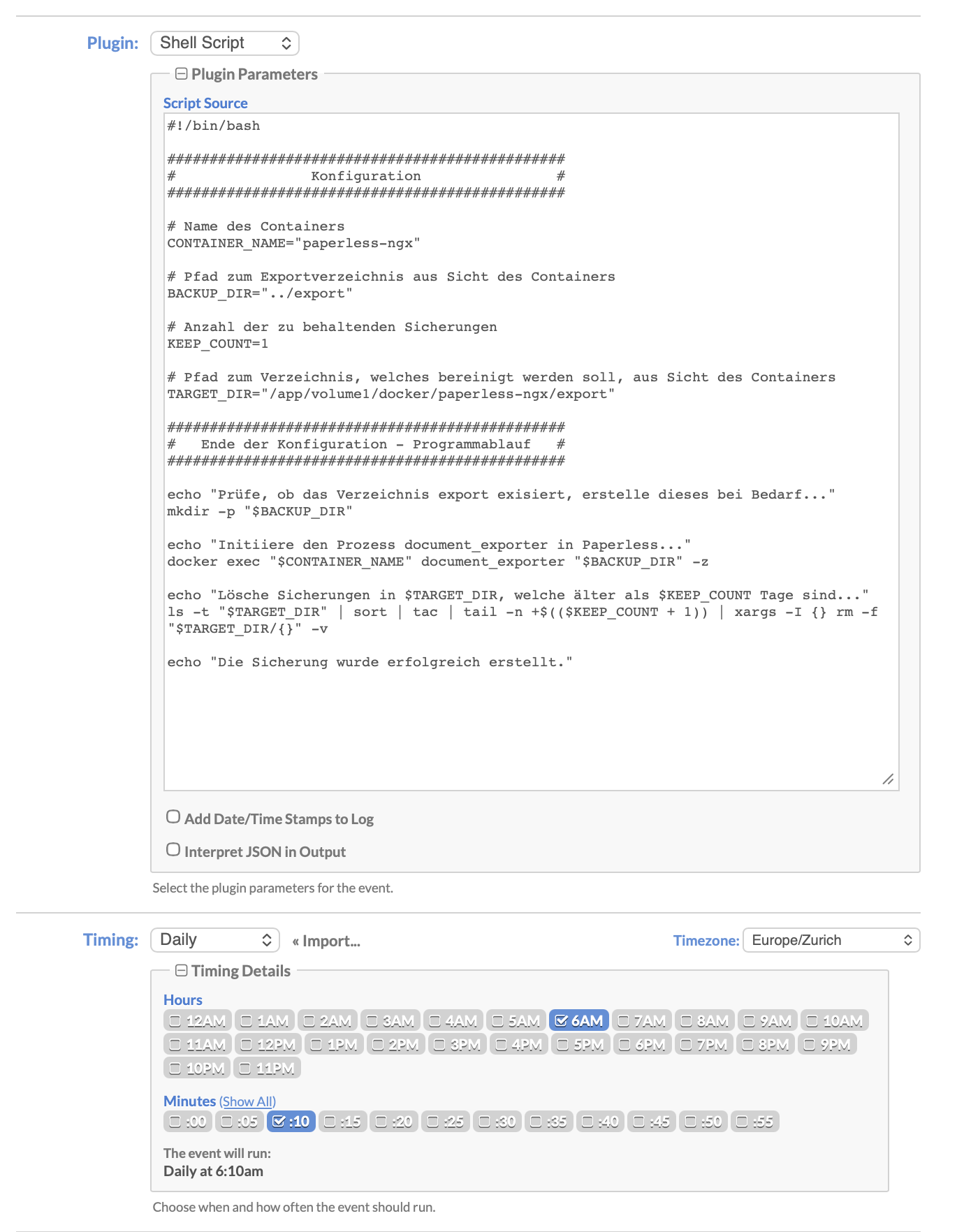 Bedeutet, Paperless wird vorab gestoppt, dann wird das Backup durchgeführt und gezippt, danach an Ort X oder Orte XYZ kopiert, anschliessend wird Paperless wieder gestartet. Dies passiert alle 2 Tage Nachts um 4h.