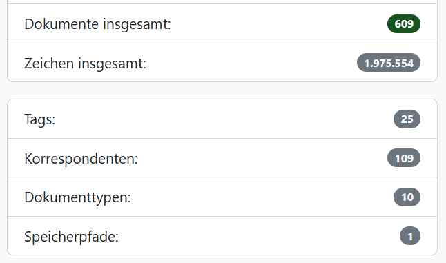 Tags: hier trenne ich erst einmal Privat, Vermietung und Firma mit Tags. Dann gibt es Unter-Tags die es nur bei Firma gibt wie Waren, Saas, Eigenbedarf usw. und dann noch Tags wie Reise, Provision, Tanken, Porto, Gas, Wasser, Strom usw. die dann das jeweilige Dokument genauer klassifizieren