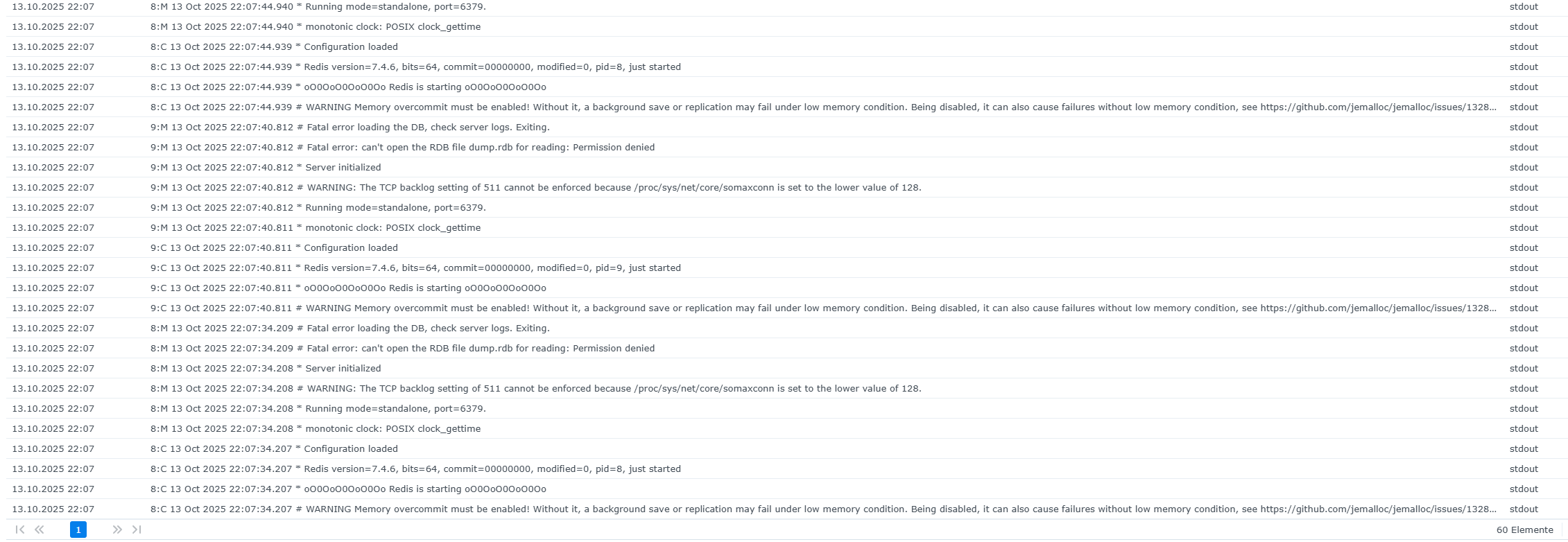 Sollte der Fehler immer noch vorhanden sein mal im Container Manager beim Container Redis in die Log Datei schaun was da nicht passt.