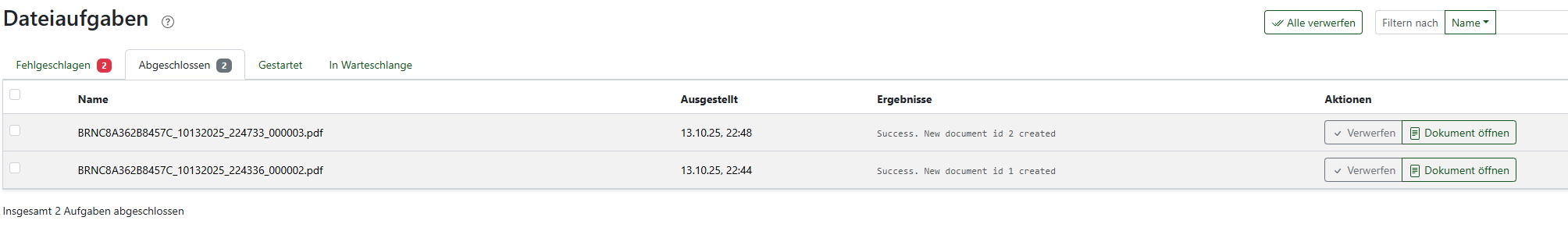 Es hat geklappt am Schluss lag es daran das es mir meinen Benutzer mit den Lesen und Schreibrechten rausgehauen hat. Läuft jetzt soweit und es kommen die Dokumente auch an. aber bei jedem Dokument was übertragen wird kommen auch Fehlermeldungen. Siehe erstes Bild.