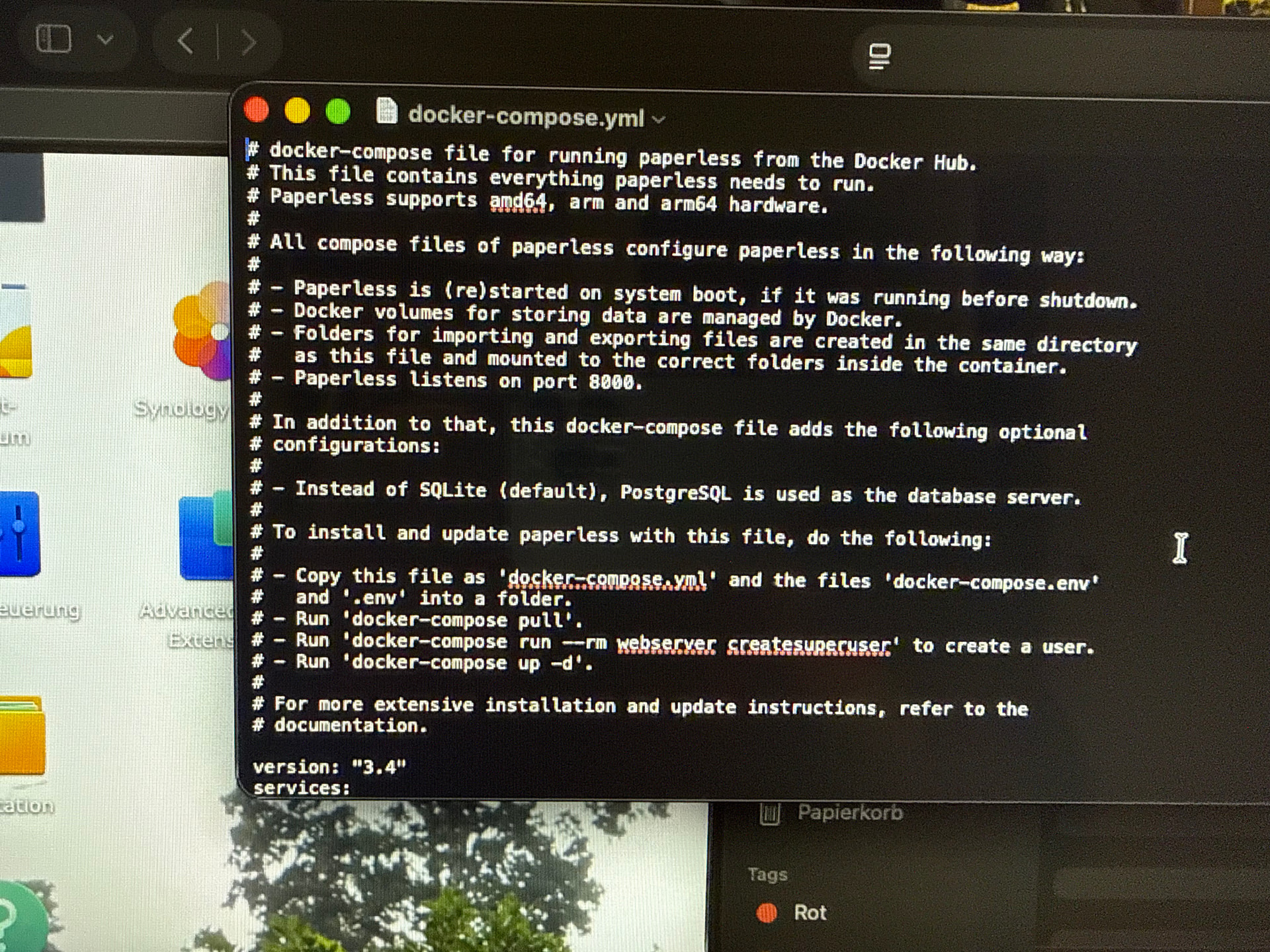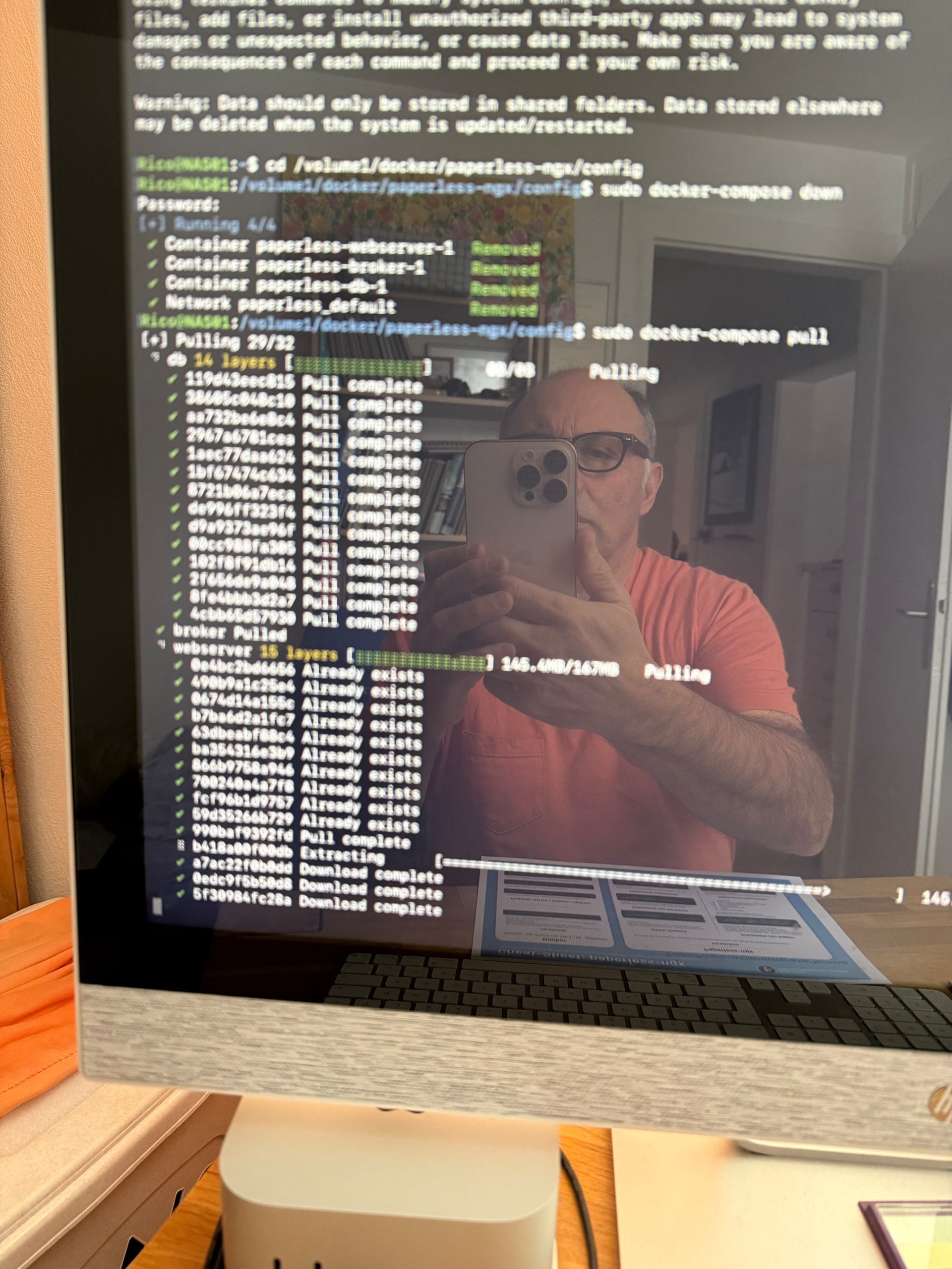 Frage: Hast Du ein Backup Deines Docker-Ordners gemacht? Vor allem der Ordner ‚Paperless‘ und darin der Ordner ‚Media‘ sollte unbedingt gesichert sein.