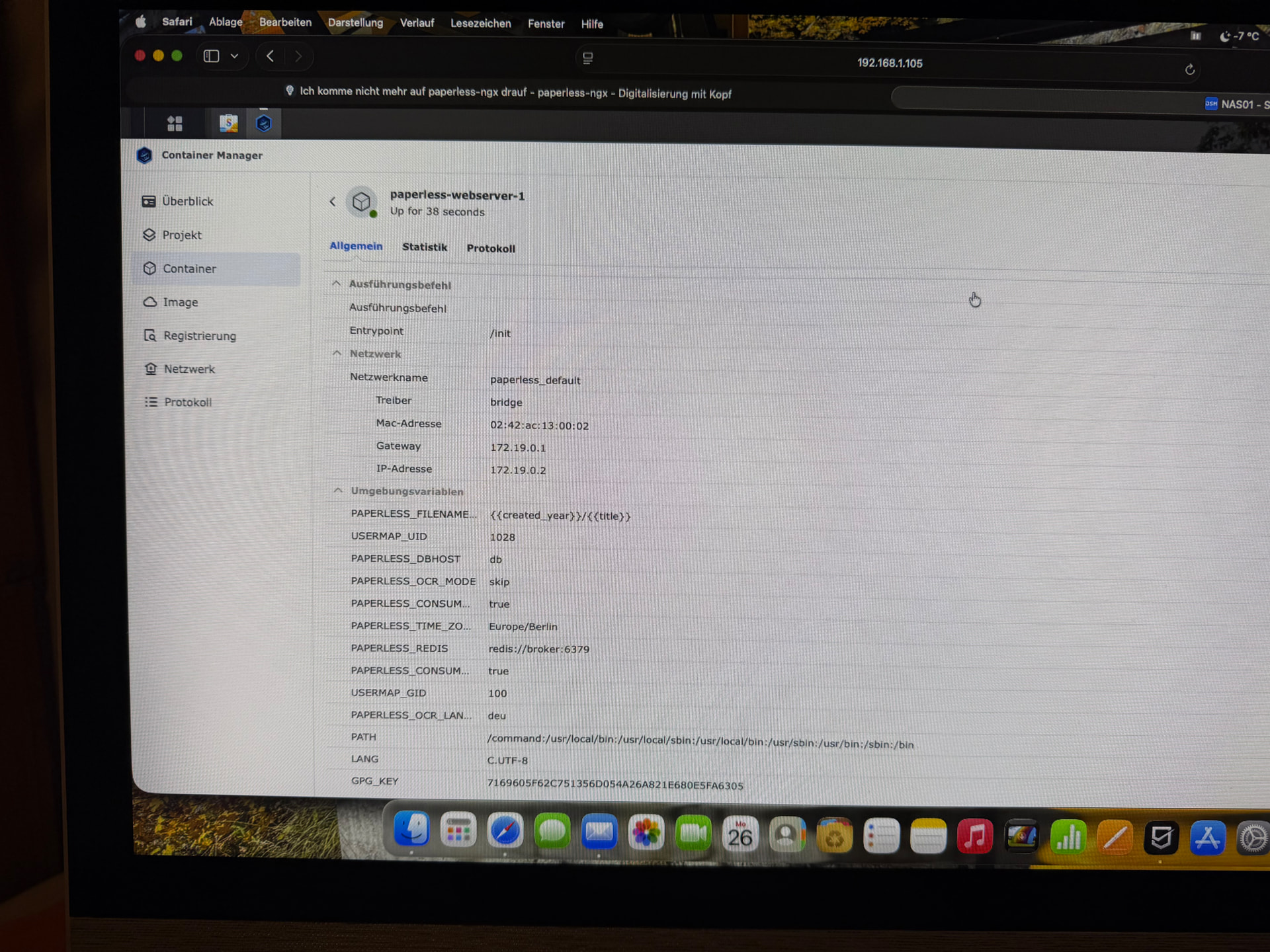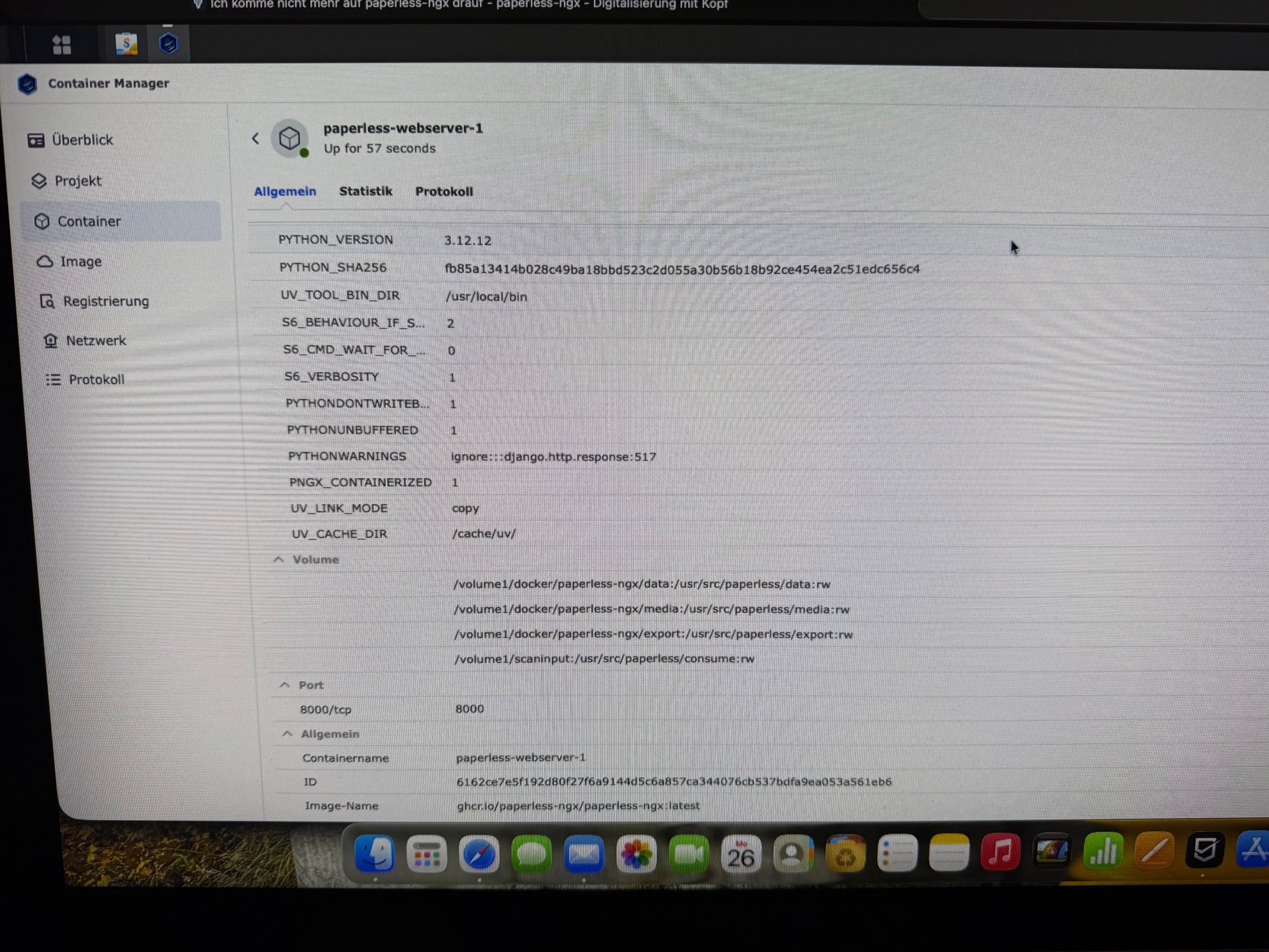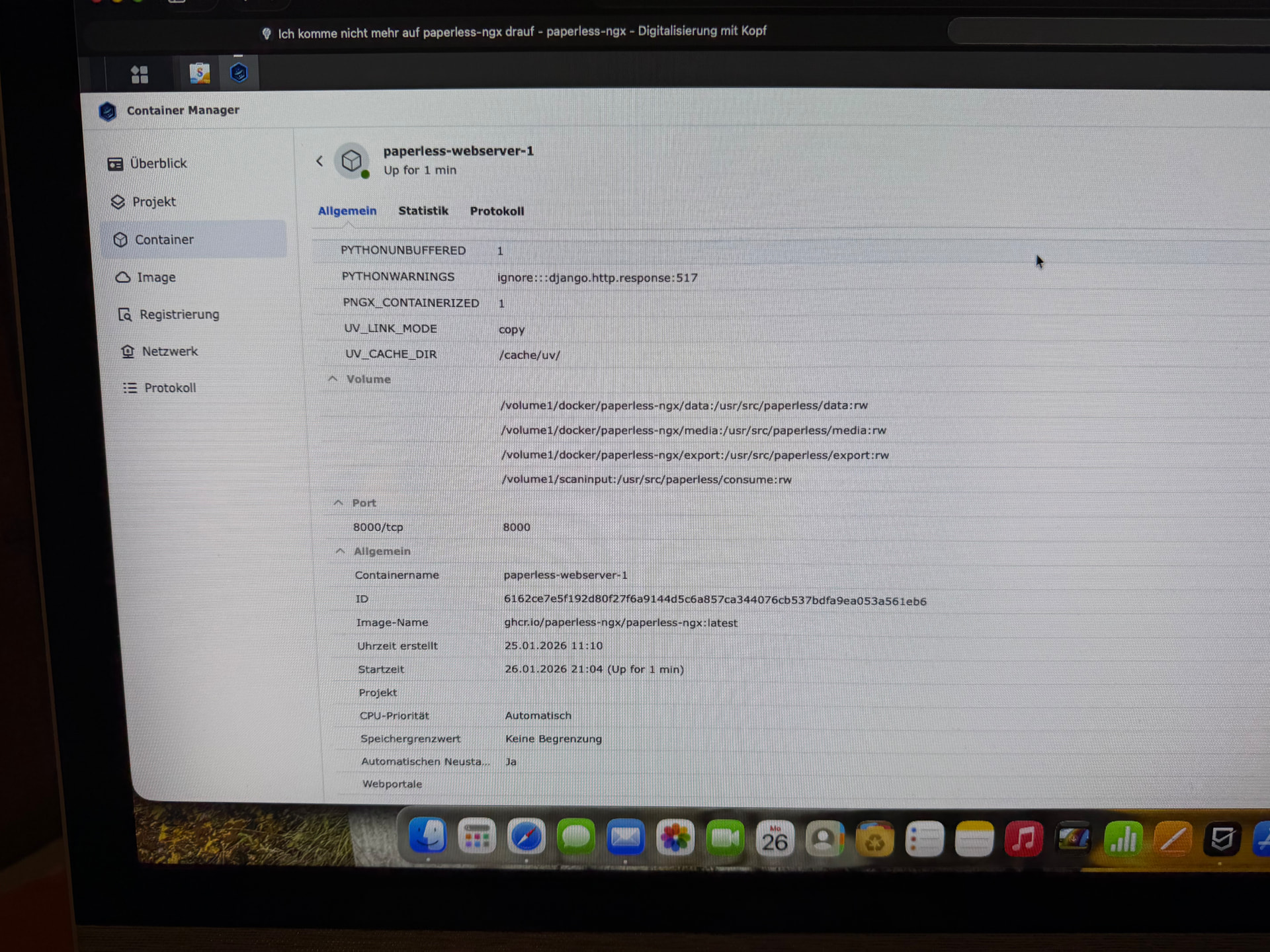 Ich frage mich ob ich doch besser wider das Papier ausdrucken und wider Ordne weil es als leihe sehr mühsam ist oder den Container Manager lösche und wider neu instliere? Die Medien Daten sind ja vol da und in Ordnung. So wie ich es verstehe Könnte ich die Original Daten nachher wider über den Scan Input rein Lessen lassen.