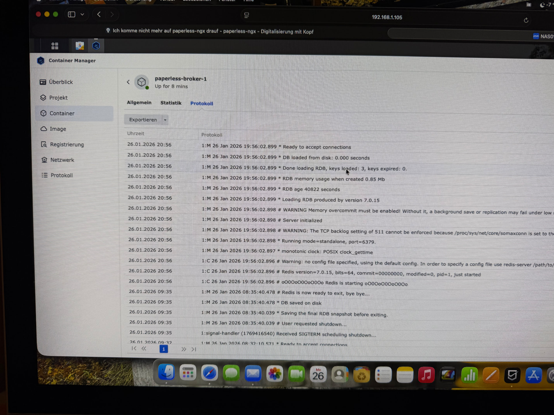 Ich Arbeite seit mehr als ein Jahr mit Paperless-ngx ich bin leihe in Sachen IT aber ich habe es geschafft mit Hilfe von der Massterklasse es zu instalieren und auch das wecseln von postgres:17 ist mir gelungen. ich gehe nicht jeden tag rein aber jetzt komme ich nicht mehr auf Paperless-ngx was könnte es sein? über das Terminal kann ich das Paperless-ngx stoppen und auch wider Starten.