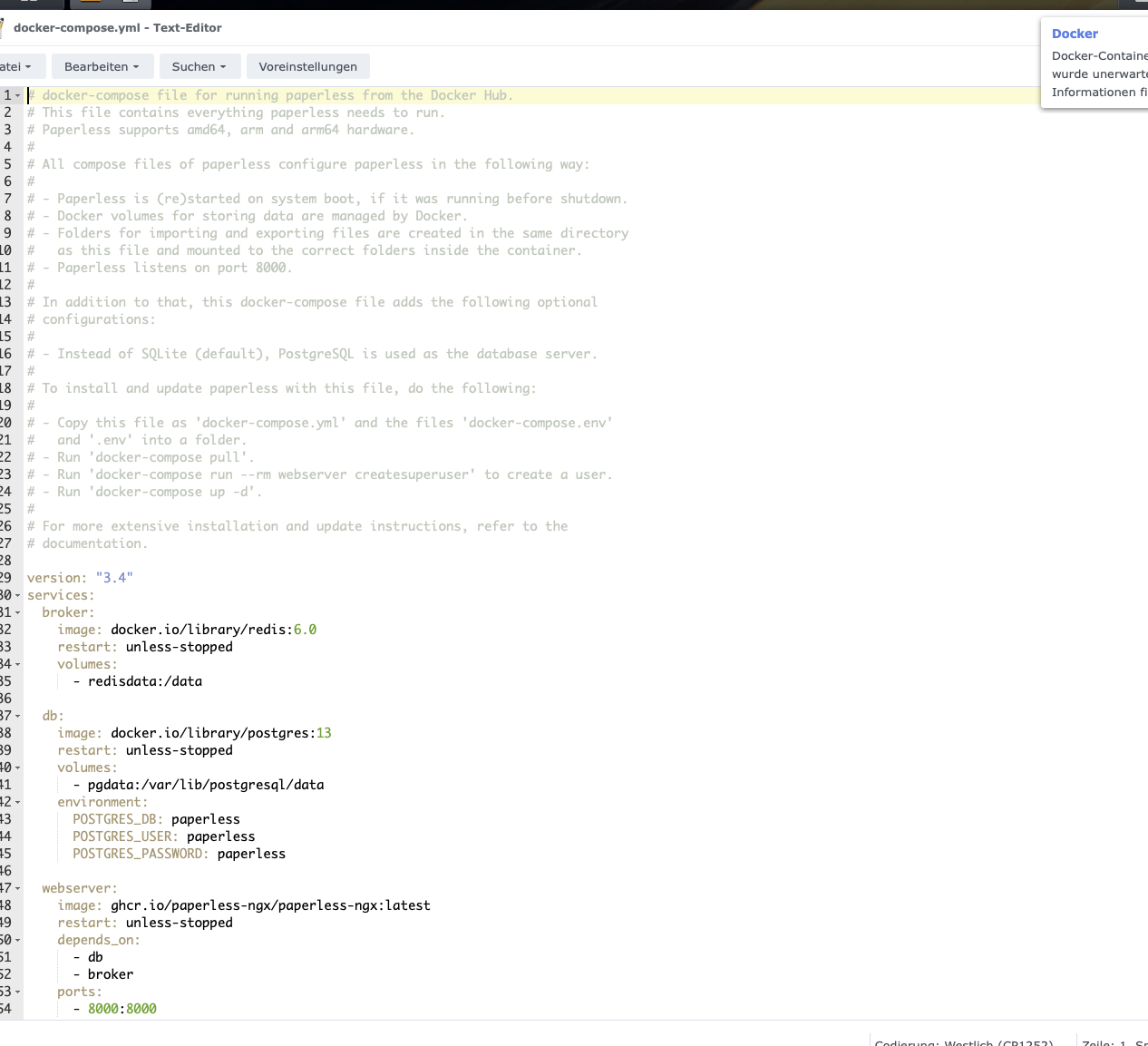 Ausserden würde ich gleich alle Volumes anpassen, dass wirklich alles im Paperless Ordner gespeichrt wird und nicht als Volume in Docker.