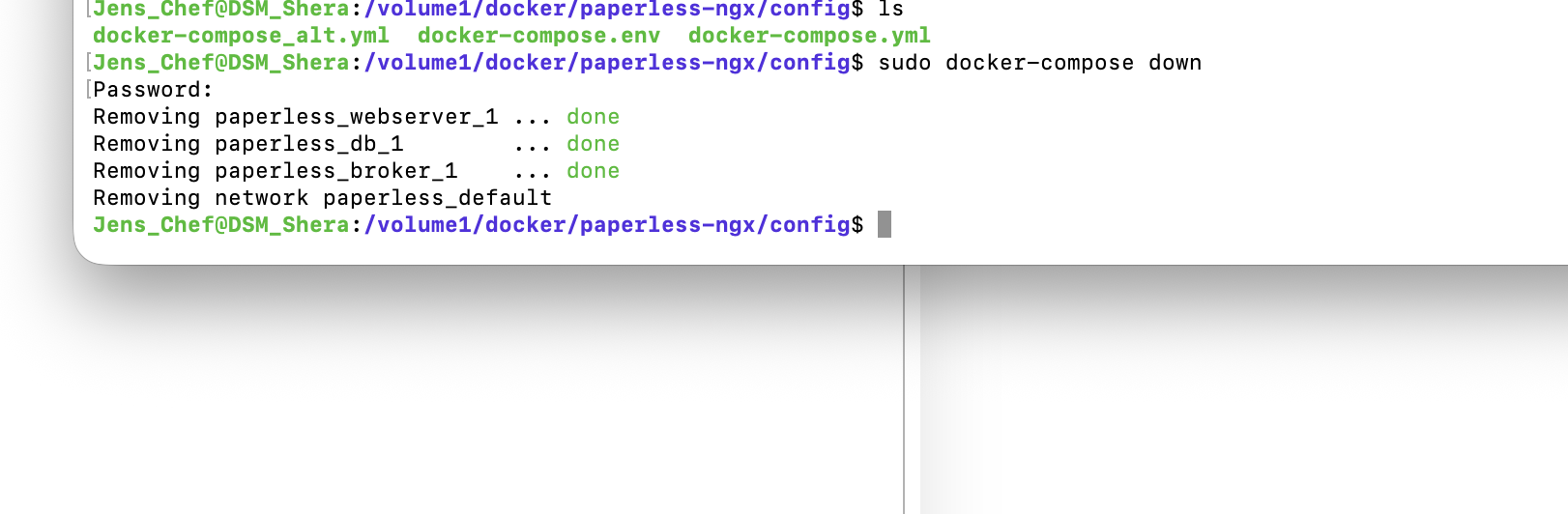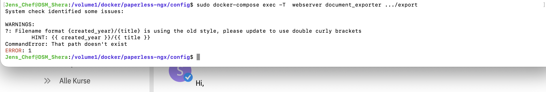 Ich habe gestern Abend mein Paperless über das Terminal wie beim letzten mal geupdatet und