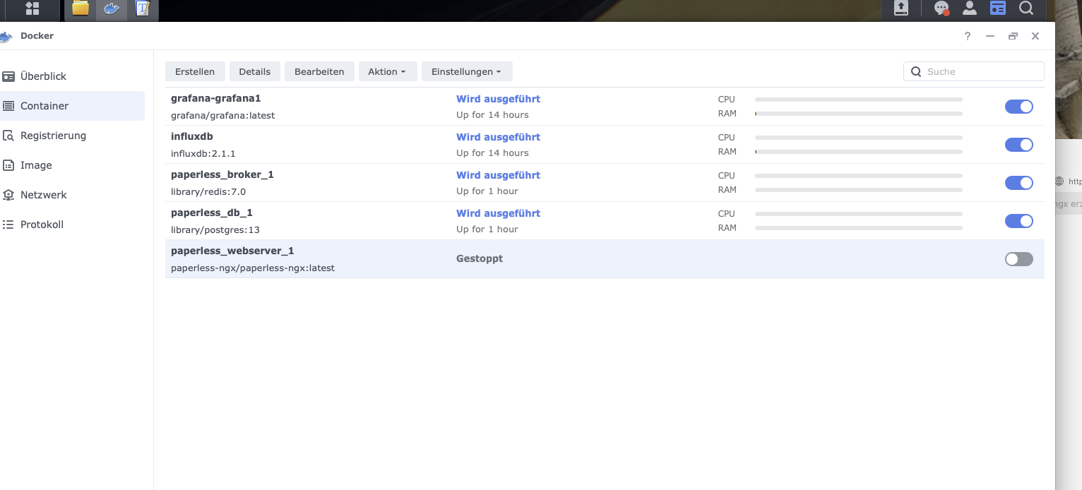 bei mir läuft Paperless-ngx im Docker auf der Synology.