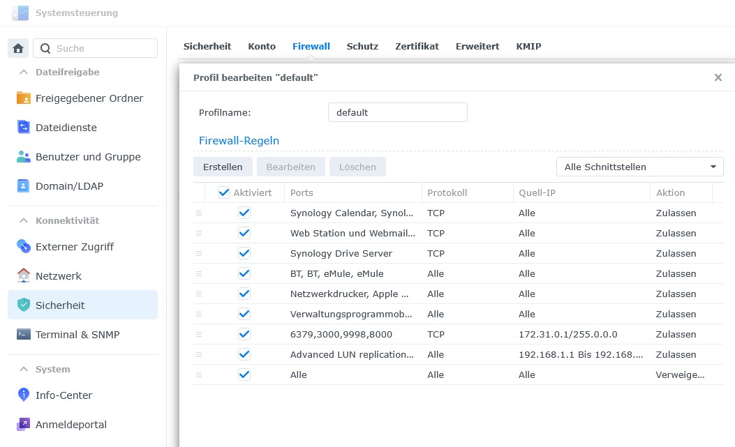 Wenn du die Synology Firewall nutzen willst ist das OK, aber lass die IP-Adreesen weg!