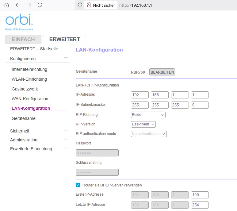 DHCP-Geräte bekommen IPs ab 192.168.1.100 (+) zugewiesen…