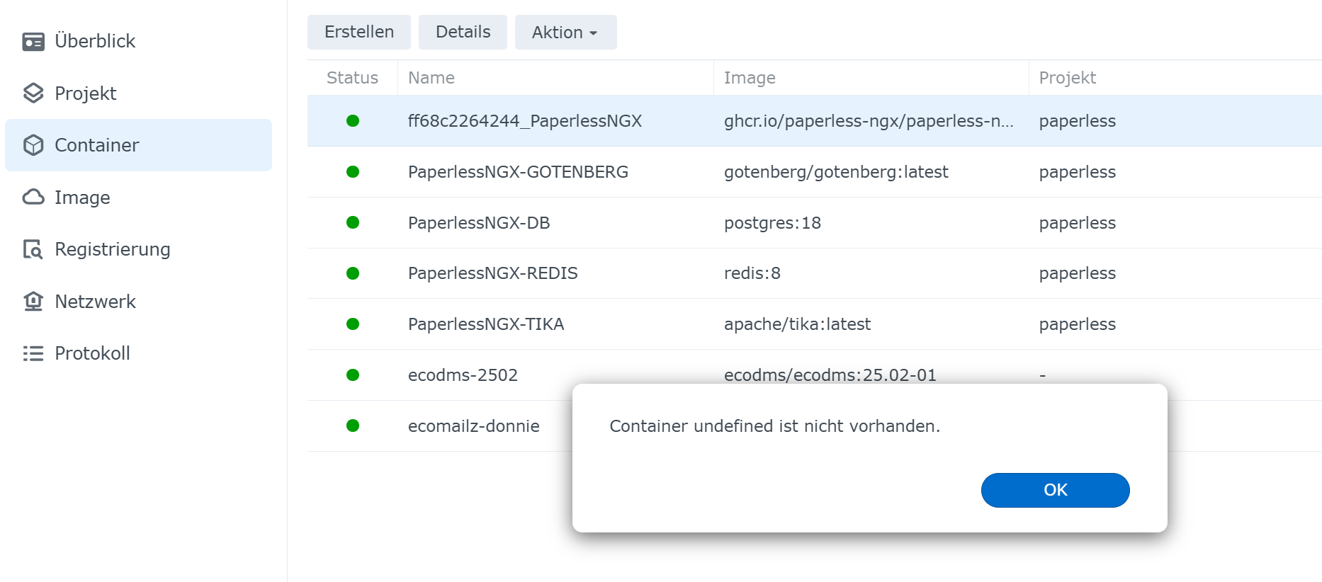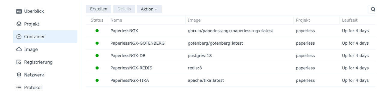 ich habe ja über ein Container Projekt paperless installiert.. seltsam ist , das Paperless läuft