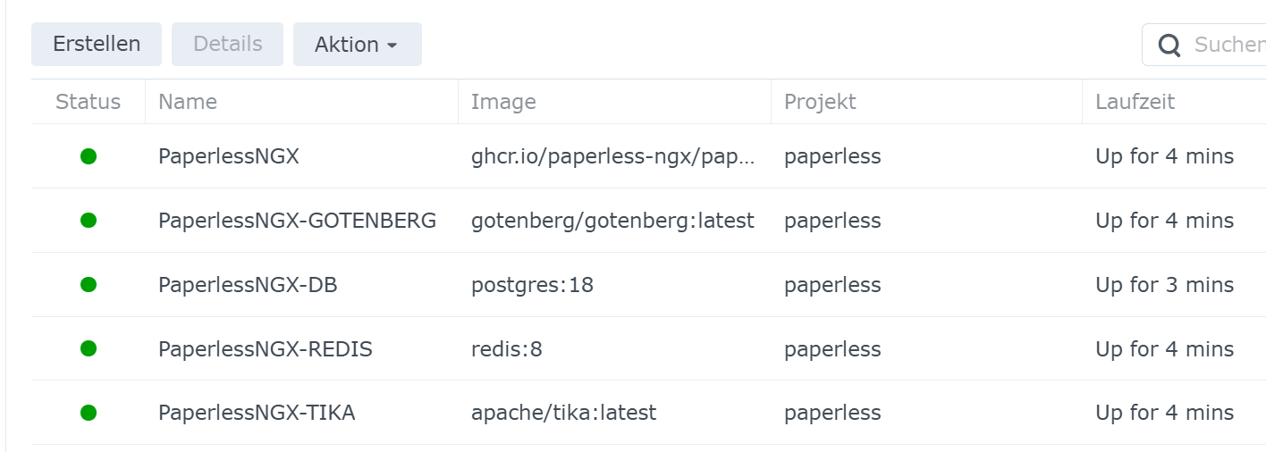 Du kannst auch das Synology Projekt löschen und die bereits vorhandenen Container manuell per Konsole starten wenn dir das lieber ist.