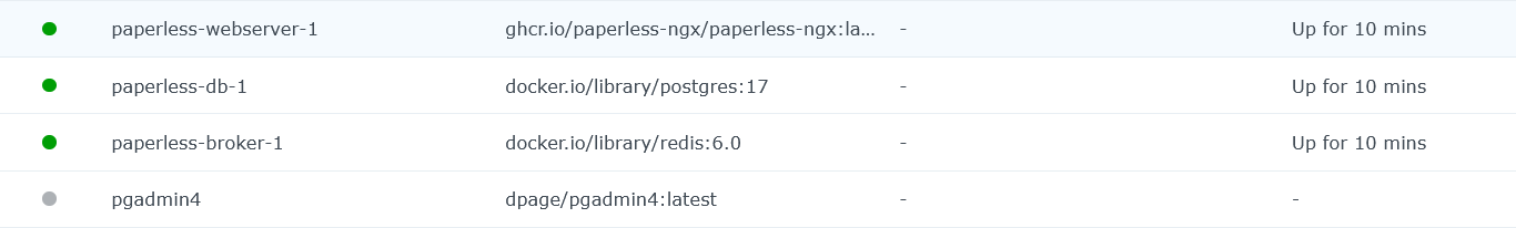 Wenn ich das System neu aufsetzen will/muss wird der kompletten Paperless Ordner wiederhergestellt und das Paperless Projekt im Docker Manager gestartet.