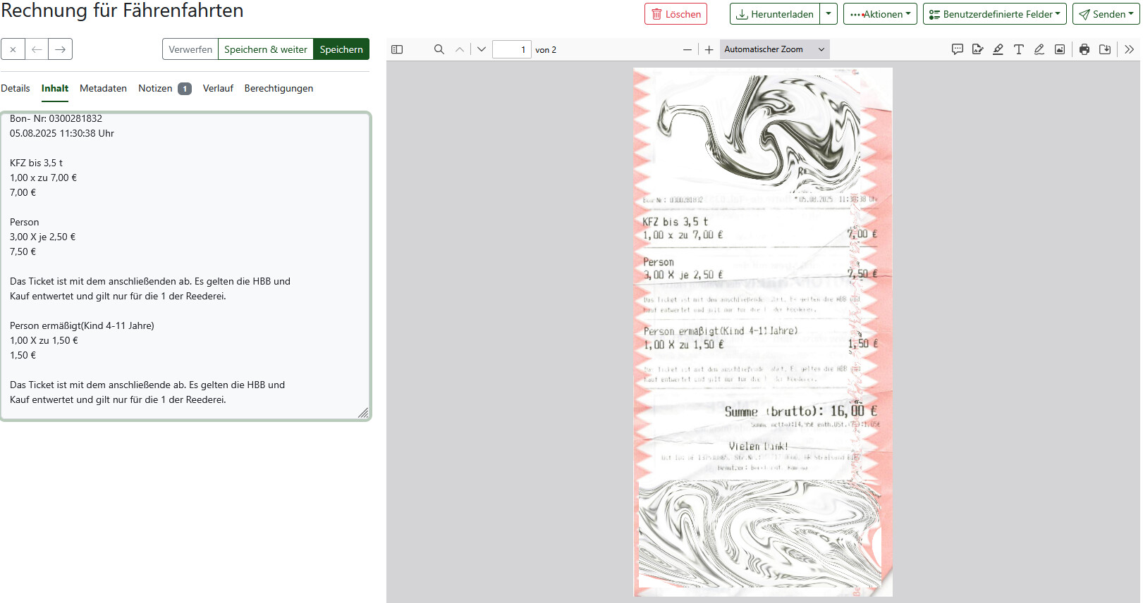 Batch-Processing: Die KI wird dann auf das Bestandsdokument losgelassen, führt ein hochqualitatives OCR durch, extrahiert fehlende Metadaten und fügt eine Zusammenfassung in die Notizen ein.