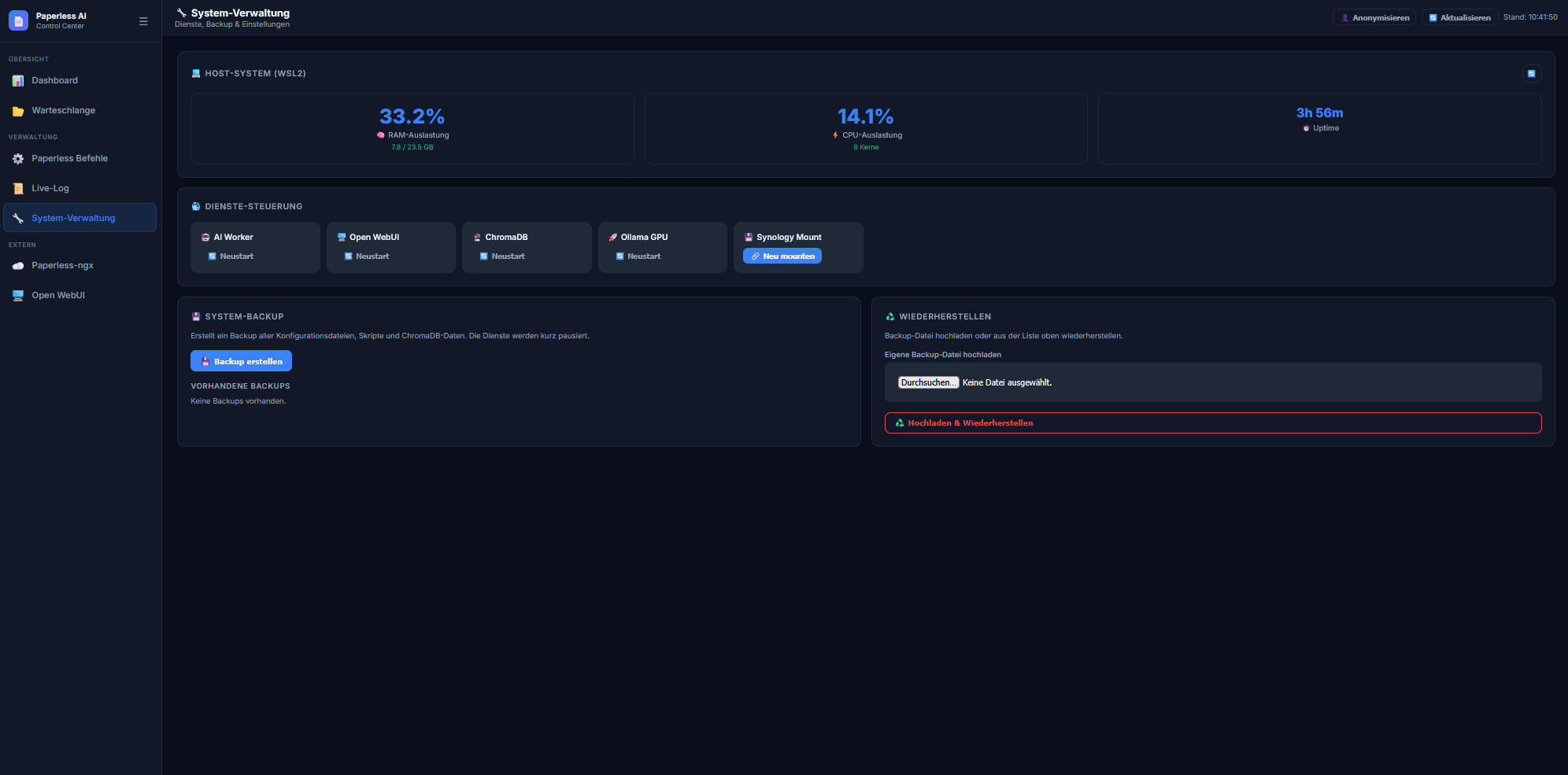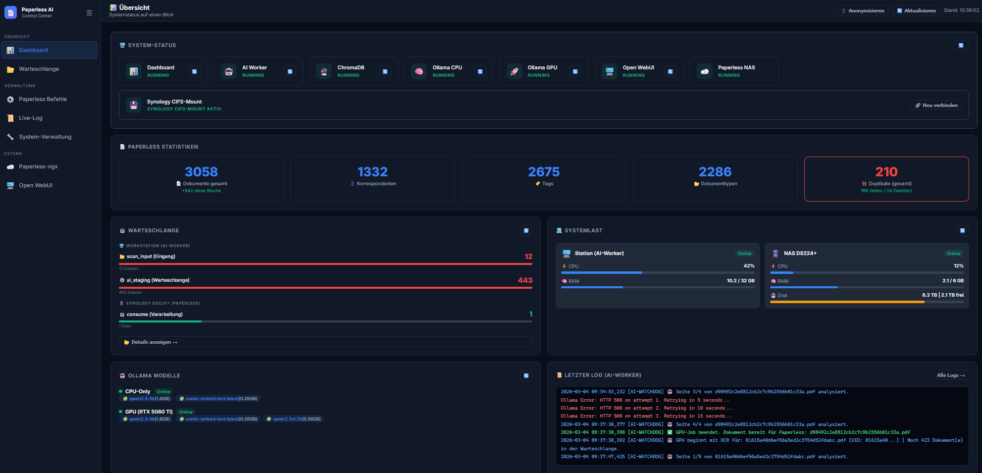 ai_staging) berechnet. Man sieht genau, wie viele Dokumente noch auf die KI-Verarbeitung warten, bevor sie in den Paperless-Eingang wandern. -