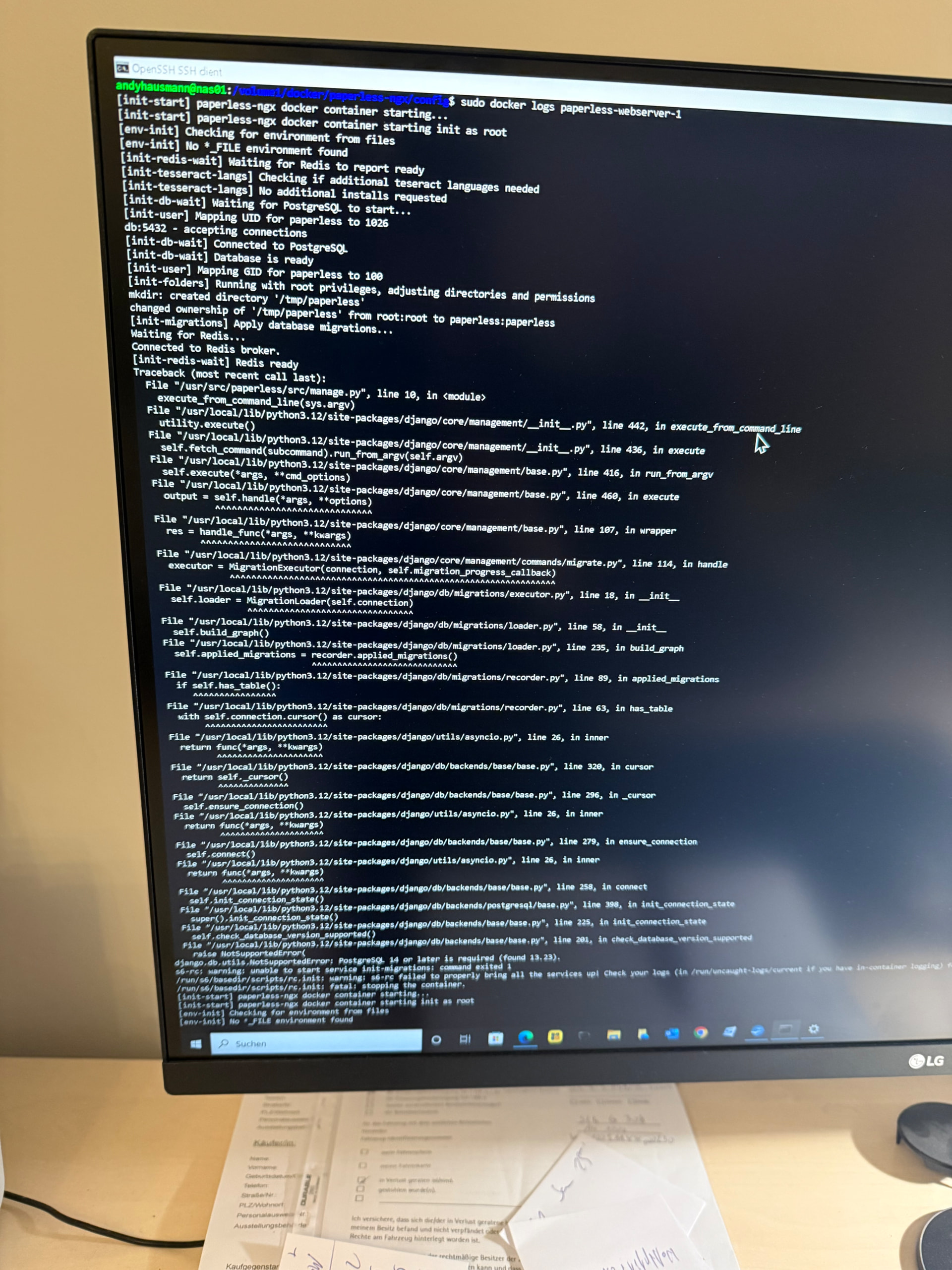 Dachte mir darauf hin ob ich Papperless-ngx in der Eingabeaufforderung runter fahre und wieder neu starte.