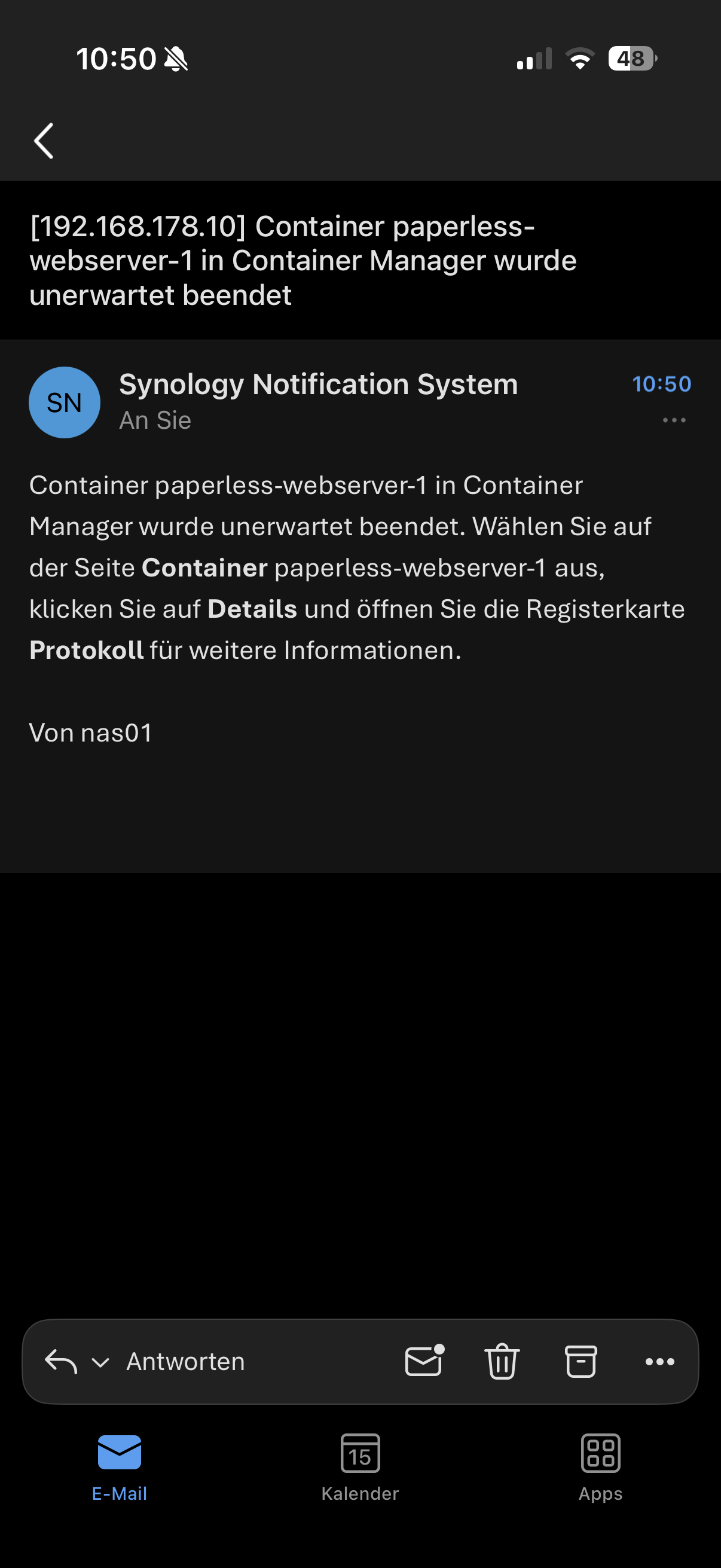 Also zur Problematik: Paperless-ngx lief bei mir seit einiger Zeit, Probleme gab es mit der Einbindung von E-Mails, habe ich nicht hinbekommen das er sie abruft.