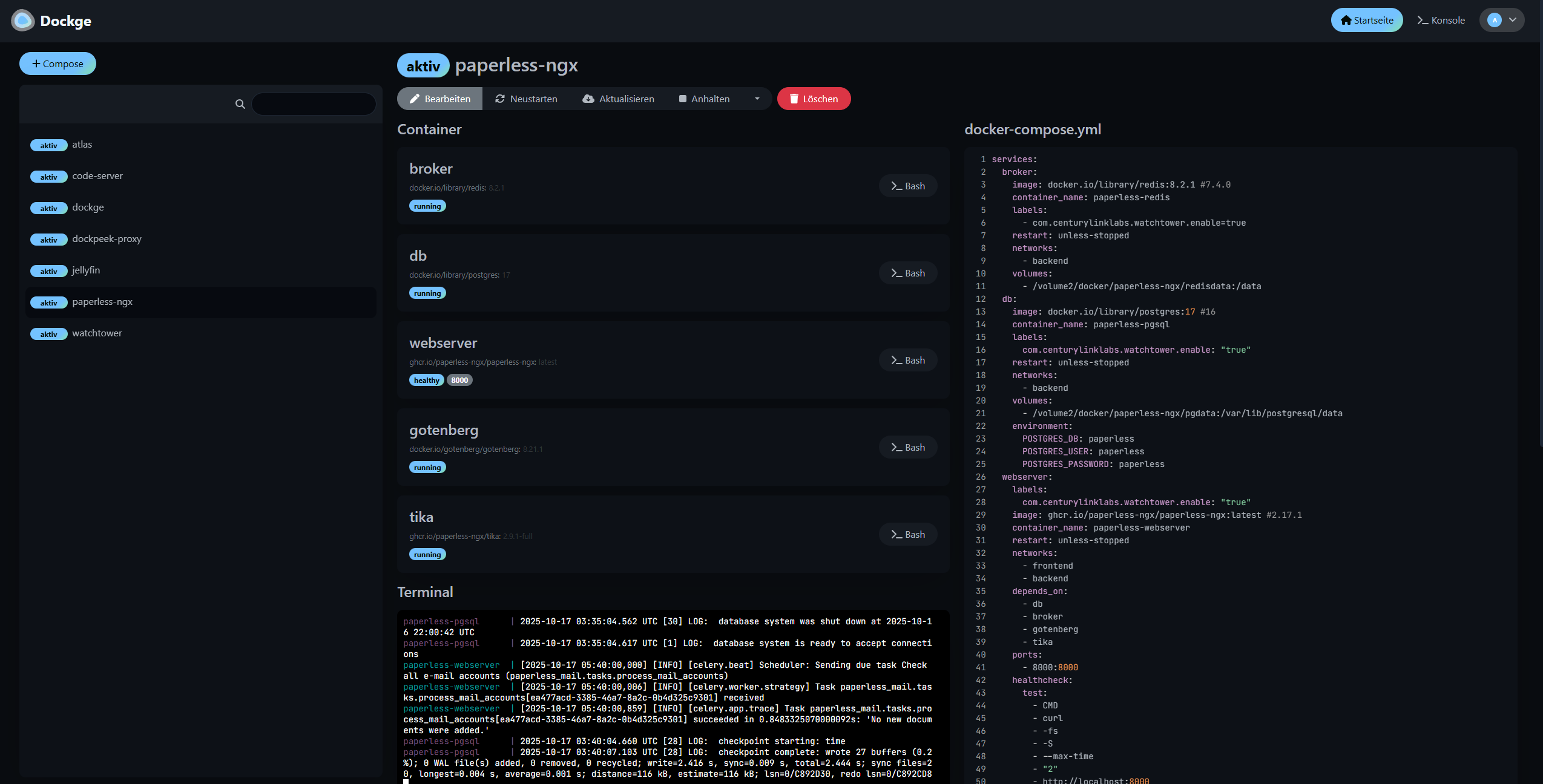 Das ist dockge und ich melde mich deswegen schon seit sehr langer Zeit nicht mehr auf der DSM ein.