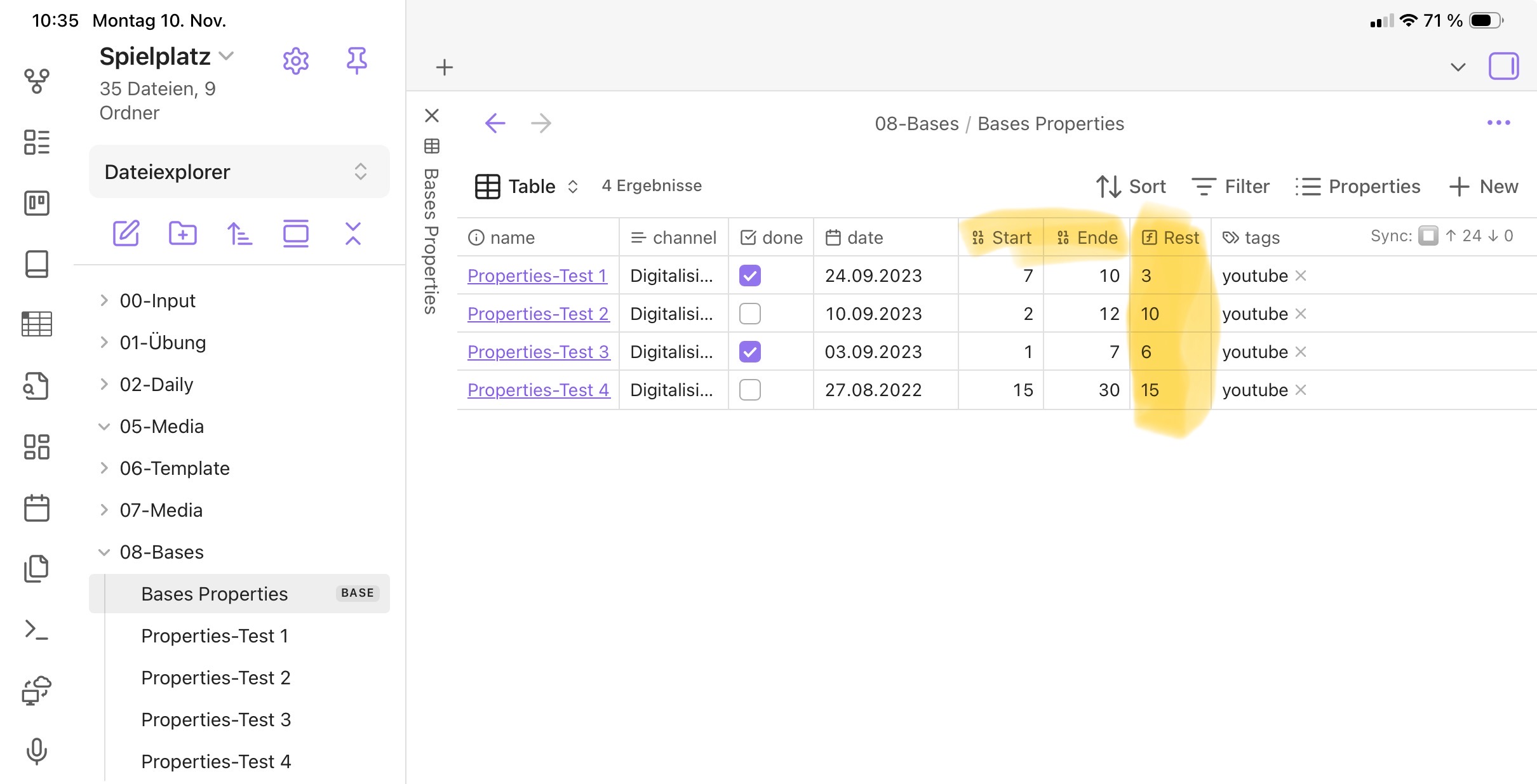 - Mit Bases können Abfragen erstellt werden, die man vorher mit Dataview durchgeführt hat.