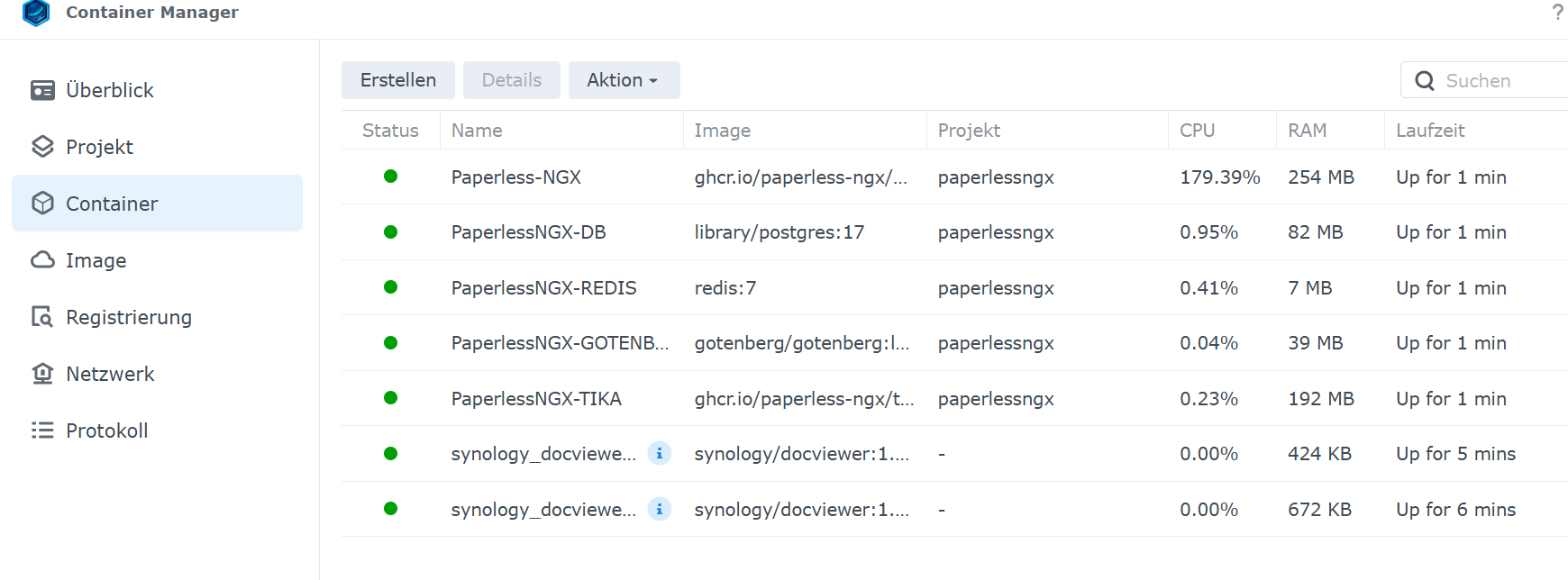 NAS Neustart bringt nichts, die Container wurden nicht erstellt weil der vorgegebene Pfad in der docker-compose nicht gefunden wurde.