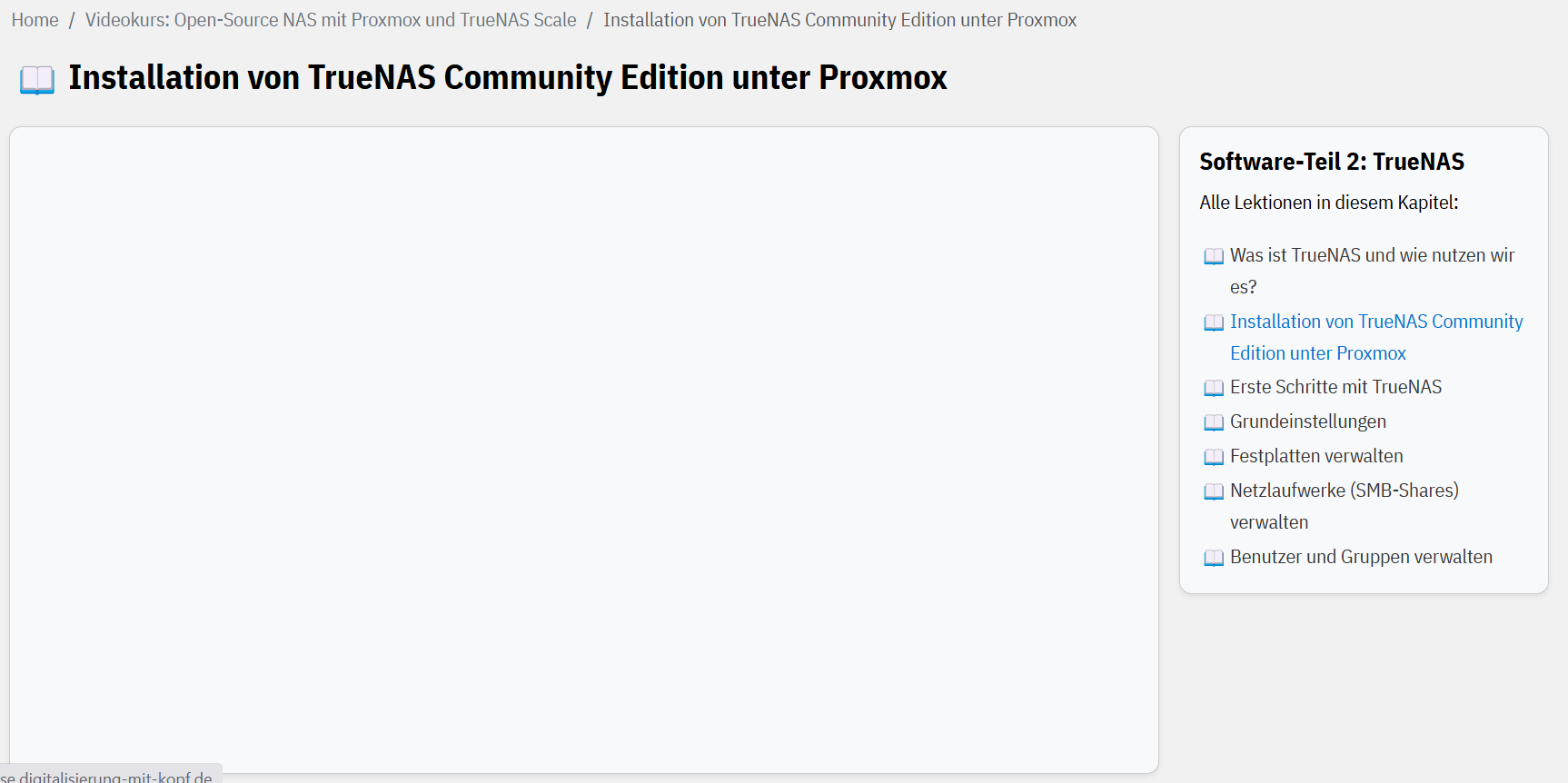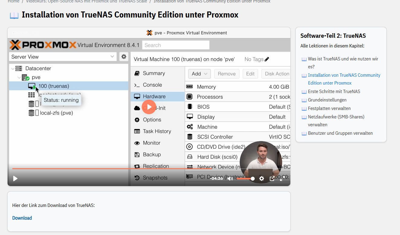 ich arbeite gerade den Kurs zum Thema Open-Source NAS mit Proxmox und TrueNAS Scale durch.