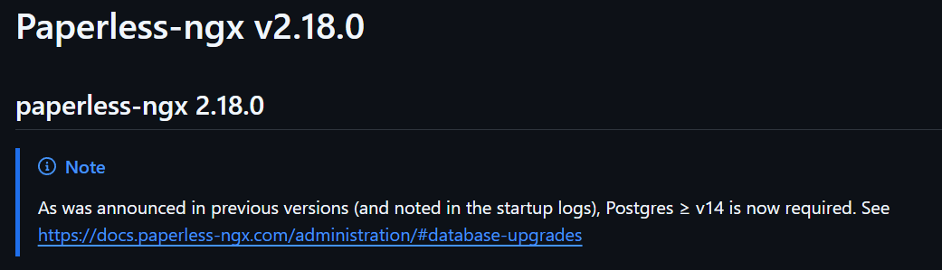 Ich habe paperles-ngx in Docker laufen. 2-3 Jahre ist das jetzt problemlos gelaufen, auch alle Updates, die so gekommen sind. Diese habe ich mit watchtower durchführen lassen. Seit ein paar Tagen funktioniert aber der Webserver von paperless-ngx nicht mehr. Der Container bleibt im gelben status „starting“ stehen. Ich habe keinen Schimmer, wie ich das Problem lösen soll. Der Server auf dem es läuft ist Debian 12.