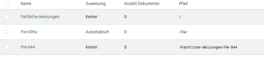 Danke für die Antworten. War unterwegs und fange jetzt erst an zu probieren. Bei mir sieht es gerade wie auf dem Bild aus. Fachliche Weisungen soll der überbegriff sein. Die Ordner FW-009a, FW-044 usw. sollen die Ebene darunter darstellen. Und das bekomme ich nicht hin.