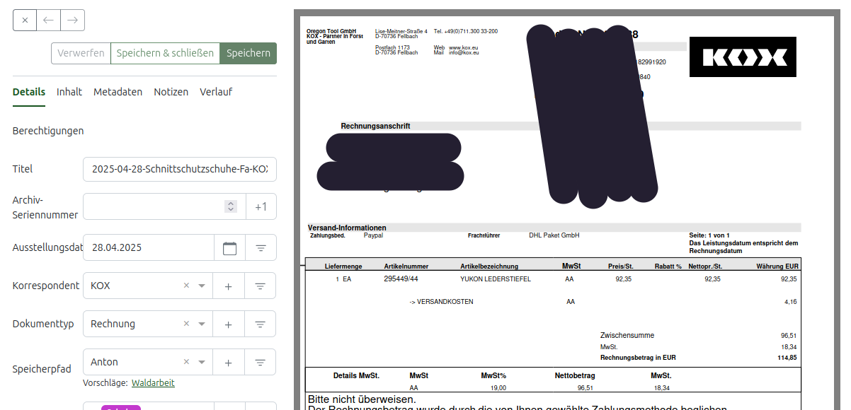 Paperless will ich deshalb verwenden, weil ich „nur“ das Speichern von Dokumenten mit Tags benötige.