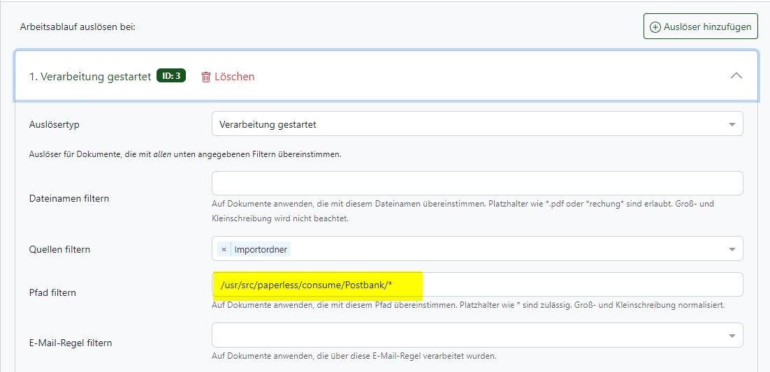Leider bekomme ich es nicht hin, dass der workflow ausgelöst wird. Hat mir jemand einen Tipp wie der Pfad angegeben werden muss um den Workflow korrekt zu starten?